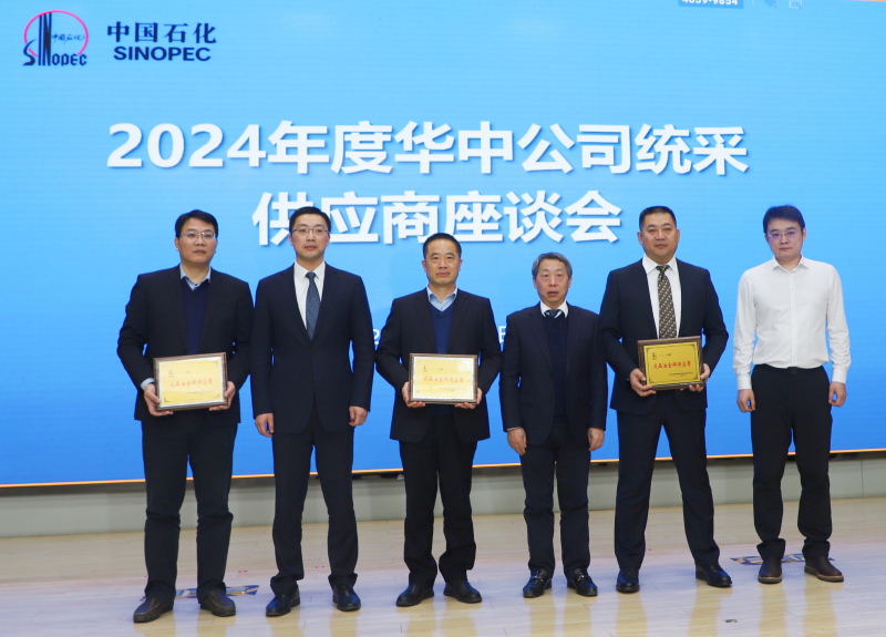 1月11日,2024年度华中公司统采供应商座谈会在中国石化销售股份有限公司华中分公司多功能会议室召开,金澳集团执行总裁吴让生,金澳科技副总裁张红,销售公司副总经理刘沛云、周尚受邀参加。会上,为金澳科技颁发了“成品油金牌供应商”奖牌。